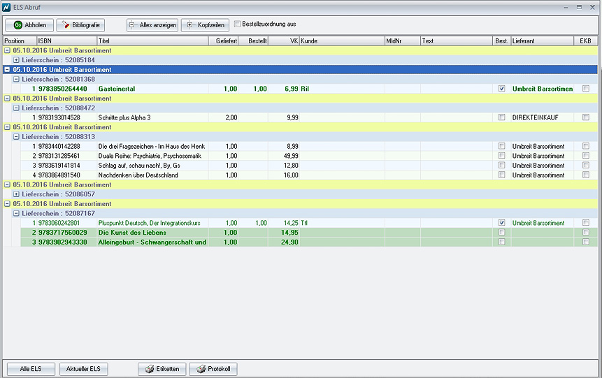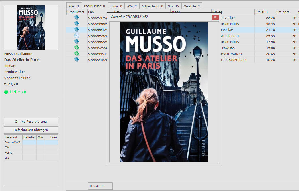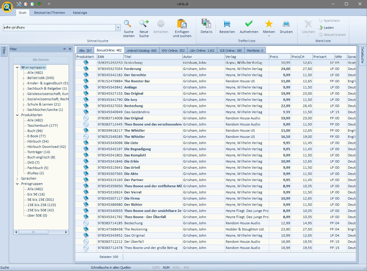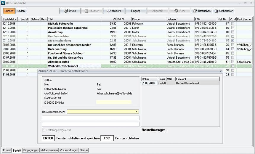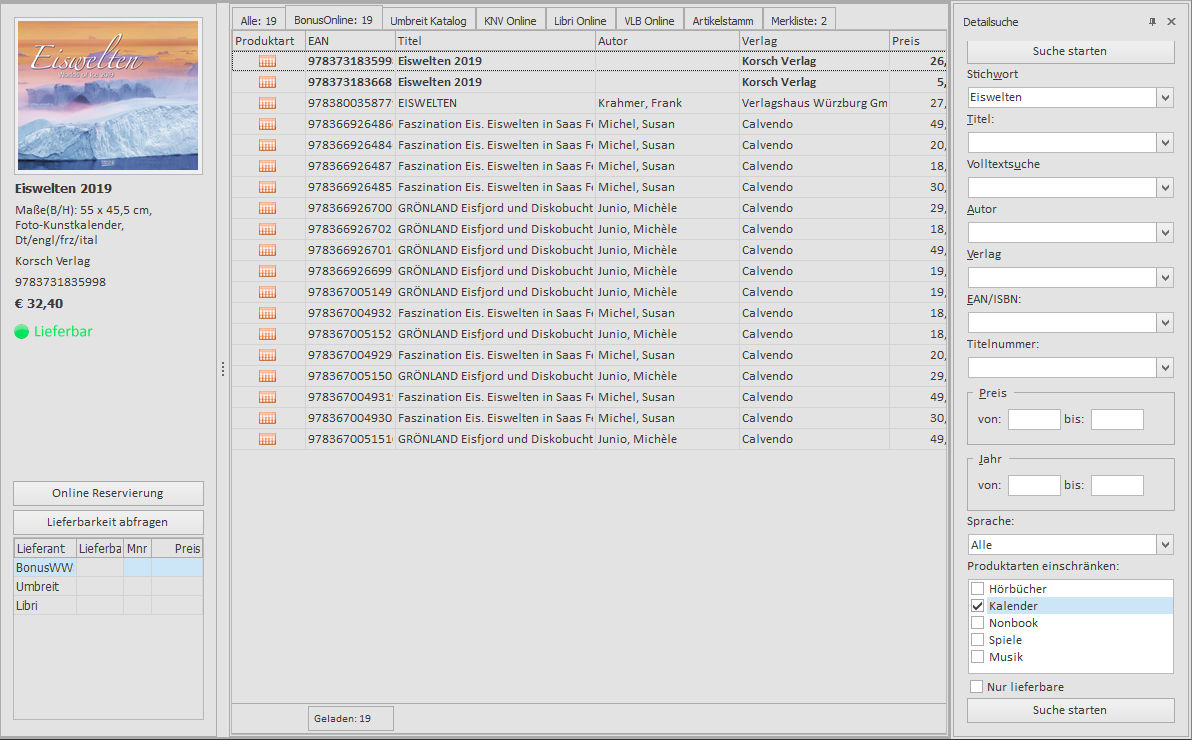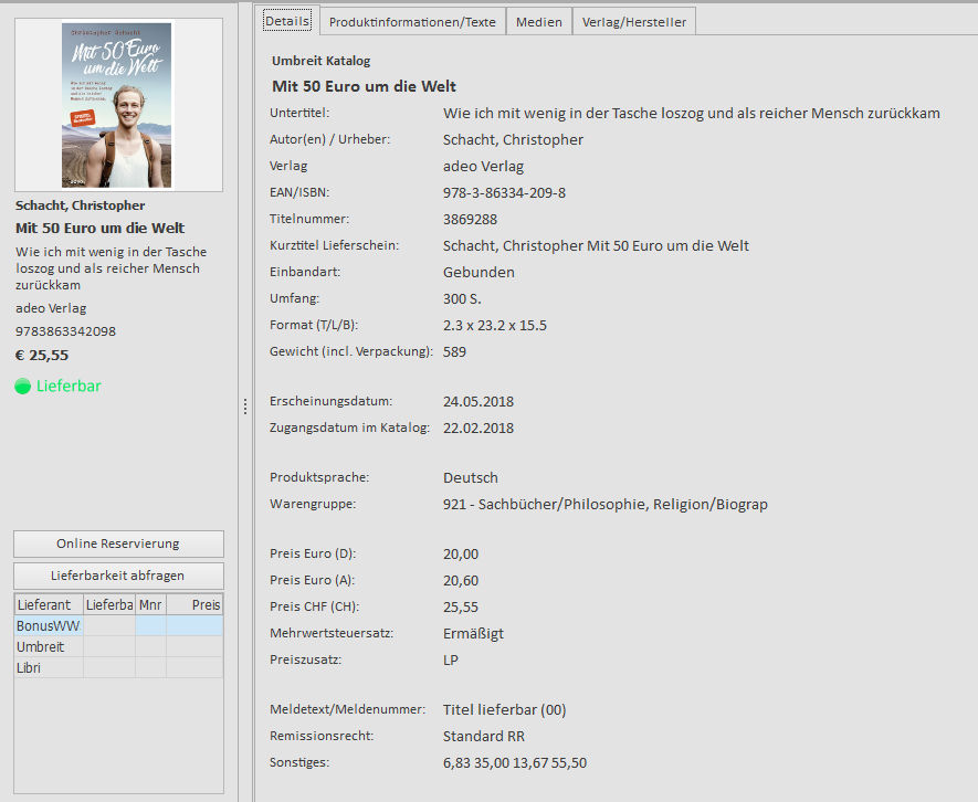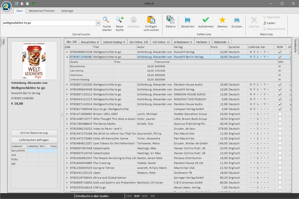 Möchten Sie auf einen Blick sehen, bei welchem Barsortiment der gesuchte Titel am Lager ist? Oder benötigen Sie zusätzliche bibliographische Angaben? Wann waren heute die meisten Kunden an der Kasse? Die Umsatzübersicht nach Uhrzeiten sagt es Ihnen.